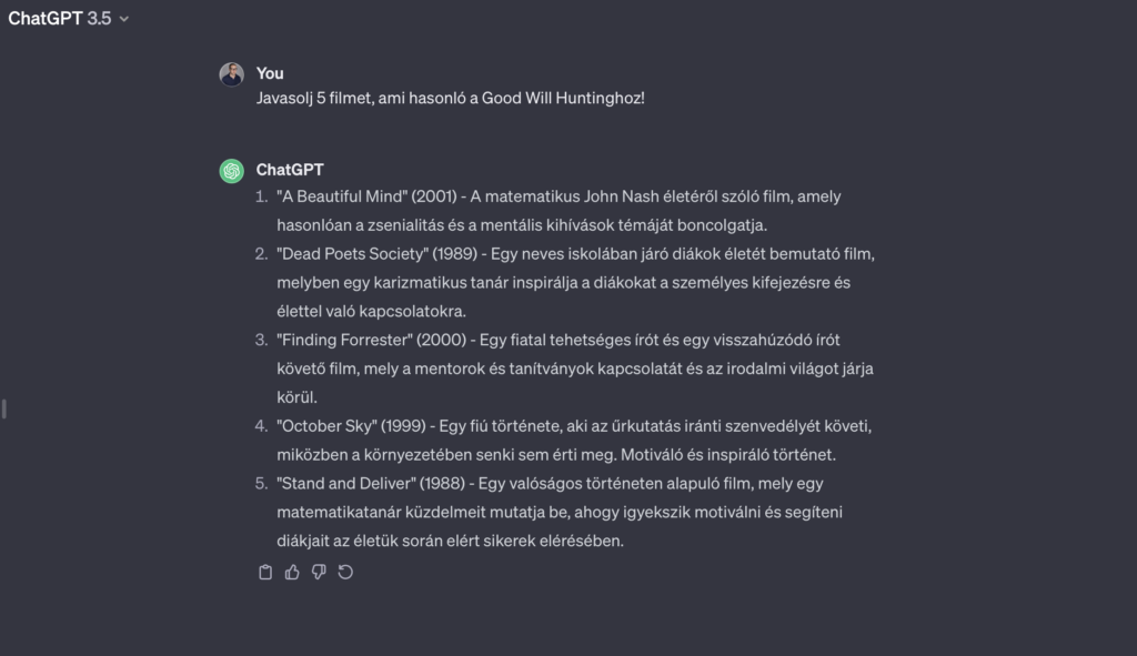 Az első javaslatom annak, aki AI, vagy azon belül is generatív AI stratégián kezdi el törni a fejét, szerezzen élő tapasztalatot valamelyik toollal, például a ChatGPT-vel vagy a Bard-dal. Nem kell túlszofisztikálni kezdetben a kérdést, például kérj tőle recept ötletet, vagy néznivalót estére: