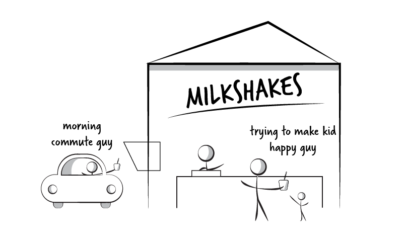 Szerencsére a 90-es években két gyorséttermi tanácsadó Detroitból utána járt a kérdésnek. 18 órát töltöttek el egy gyorsétteremben, és eközben megfigyelték az embereket, akik turmixokat vásároltak, majd meg is interjúvolták őket. A válaszok mélyére nézve kiderült, hogy korántsem csak az éhség/szomjúság csillapításáról van szó.