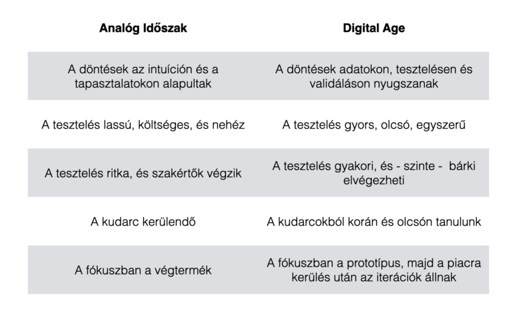 A digitális technológiáknak köszönhetően ma már gyorsan, könnyen és olcsón tudjuk tesztelni az új ötleteket, sőt a piacra dobott innovációkat is folyamatosan csiszolni lehet és kell is a piacra kerülést követően.