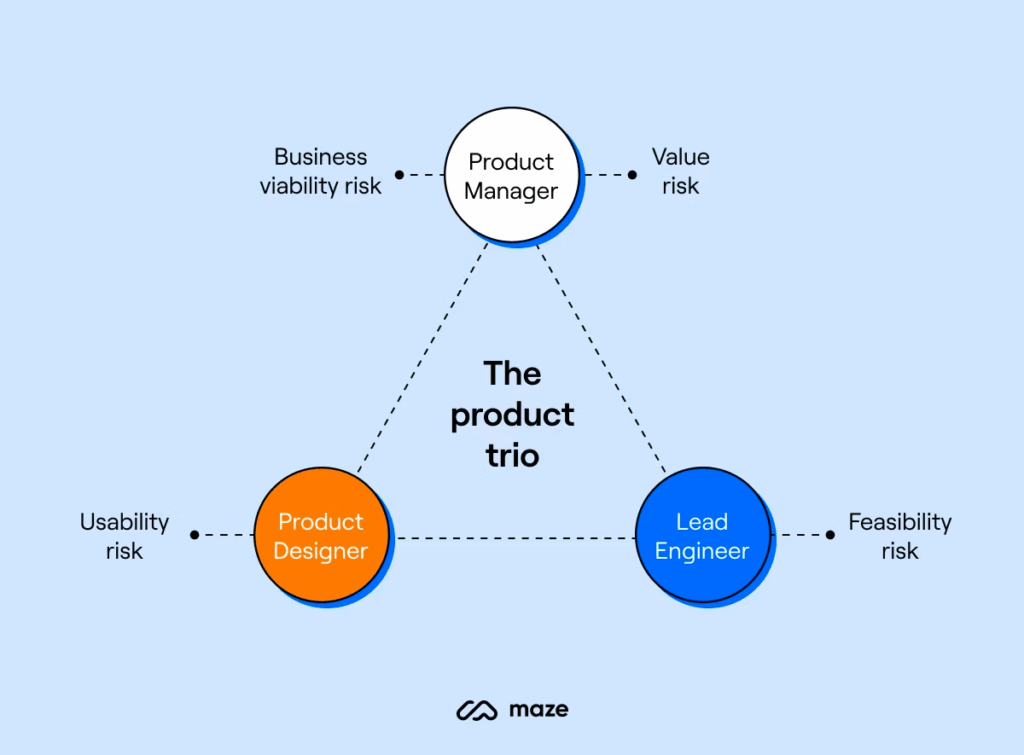 Ideálisan a product teamekben lévő kompetenciák – designer, fejlesztők, product managger – behozzák a szükséges tudást, és köztük intenzív és állandósított kollaborációnak kell történnie – például prototípusok segítségével -, hogy a user és a üzlet is folyamatosan értéket tudjon kivenni a termékből.