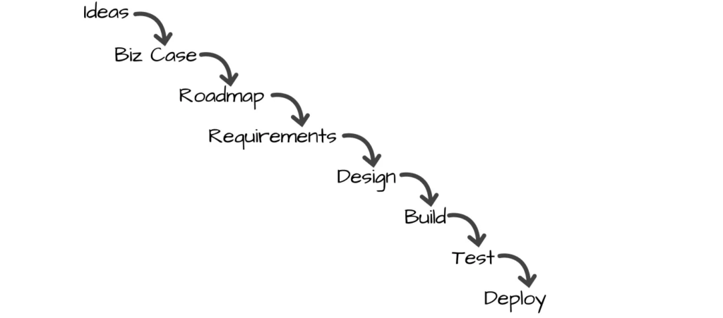 Mind a mai napig sok csapat valójában a jó öreg vízesés modellben dolgozik – esetleg agilis fejlesztésnek átnevezve, de agilitást nyomokban sem tartalmazva – ahol a product manager/vagy inkább product owner definiálja a követelményeket, átadja a product designernek, hogy álljon elő egy olyan designal, amely megfelel ezeknek a követelményeknek, majd – általában a sprint planningnél – tovább adja a követelményeket és a design terveket a megvalósító fejlesztőknek.