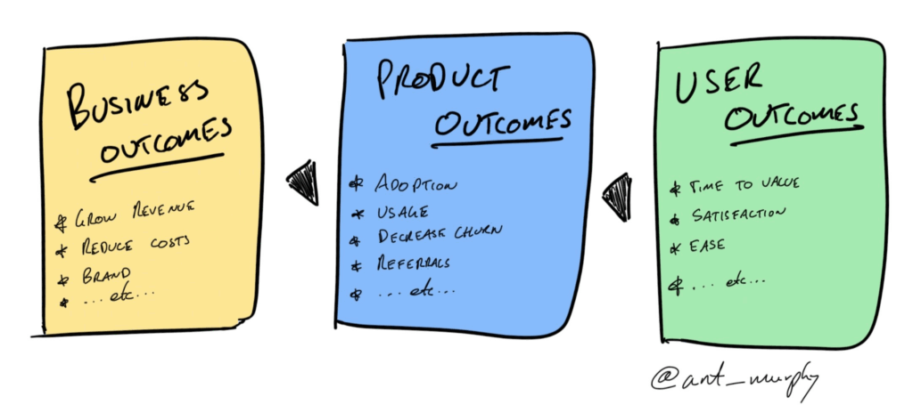 Ami a product teamek értelmezhető értékét adja, hogy tevékenységének milyen eredménye lesz a felhasználó/ügyfél és az üzlet számára.