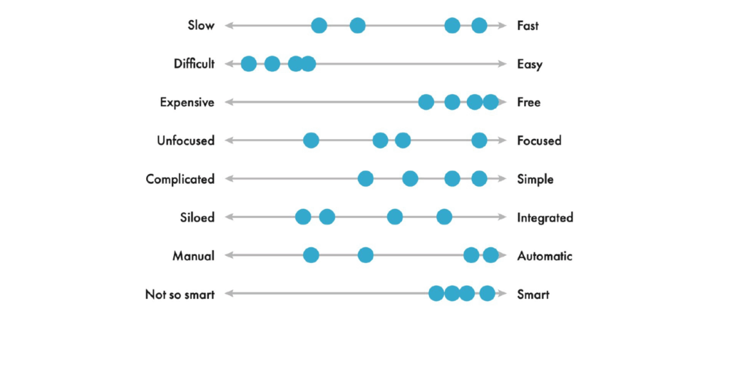 Egyedül dolgozva, majd szavazással értékelitek, mennyire vagytok jobbak a konkurenseknél a klasszikus területeken, például gyorsaság, egyszerűség, ár.