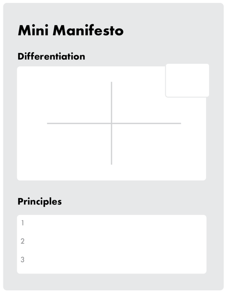 Az első nap végére a csapat egy Mini Manifesto-t állít össze: egy tömör megfogalmazást a lehetőségről és annak megkülönböztető jegyeiről.