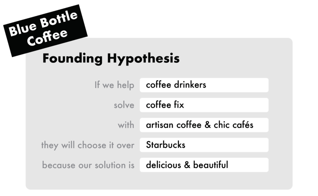 Például a Blue Bottle Coffee esetében: Mi azért leszünk sikeresek a városi, igényes kávéfogyasztók körében, mert jobb minőségű, frissen pörkölt kávét kínálunk, mint a nagy kávéláncok, mivel mi a helyi pörkölésre, kézi készítésre és szezonális kínálatra építünk.