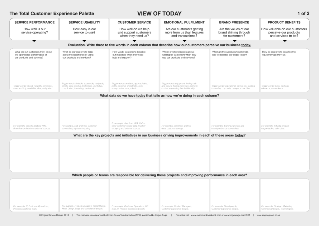 A másik könyv, amit ajánlok a Customer-Driven Transformation az Engine nevű service design ügynökség alapítóitól. A cím alapján béna CX könynek tűnhet, de valójában az egyik legjobb gyakorlatias service design könyv amit olvastam, a szolgáltatásélmény paletta eszköz is innen származik.