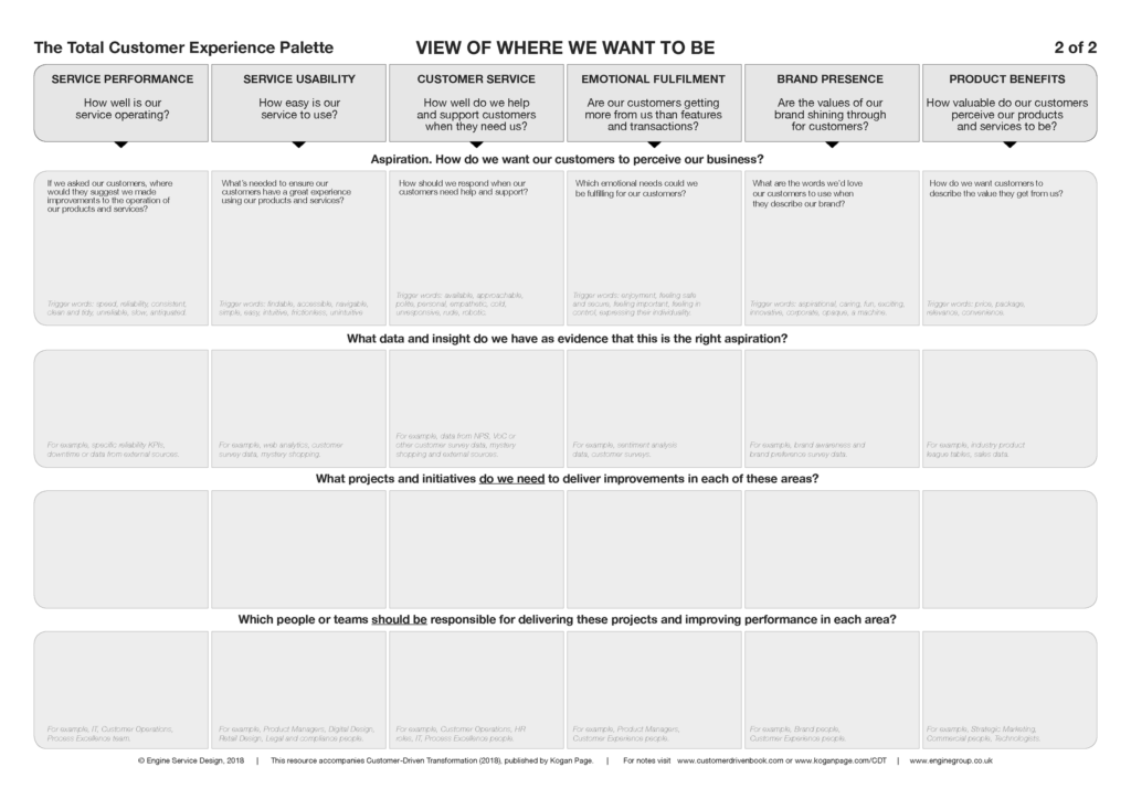 A második lépés egy to-be állapot kidolgozása, az ideálisnak vélt szolgáltatásélményhez szükséges szervezeti funkciók, kezdeményezések, ambíciók kirakása: