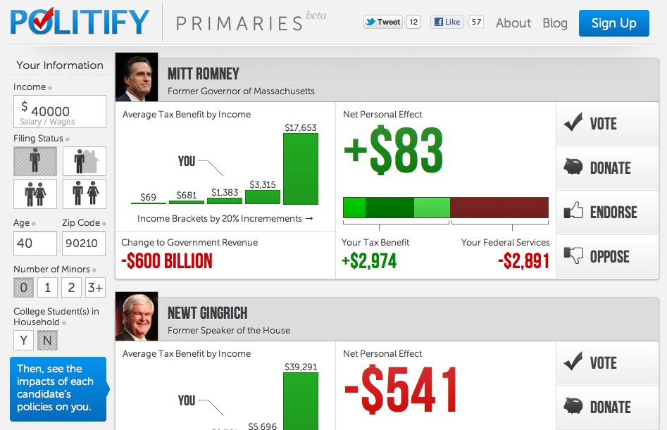 Ezért úgy döntött épít egy productot, a Politify-t ami segít vizualizálni, hogy az egyes elnökjelöltek választásának milyen pénzügyi hatásai lehetnek.